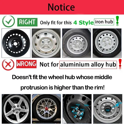 - Designed for 15" stock steel wheels and will not fit over aluminum alloy wheels. Measure this by checking the number after the "R" on your tires. It must say R15!